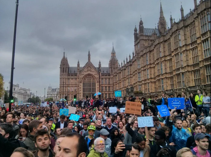 Zeci de mii de oameni sunt așteptați să mărșăluiască astăzi în Londra pentru a le cere guvernanților să nu scoată Marea Britanie din Uniunea Europeană și să ignore votul pro-Brexit de la referendumul din 23 iunie (52% - 48%).