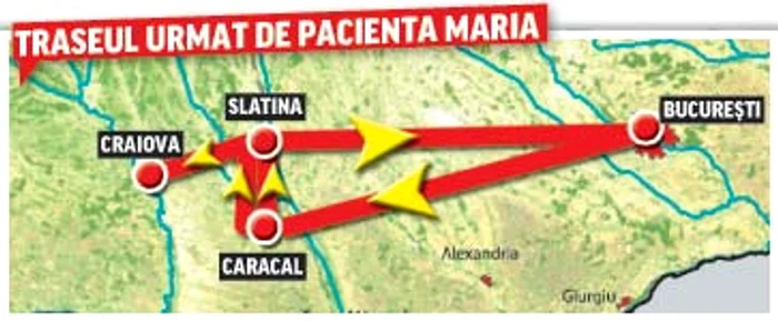 Caracal - Slatina – “Marie Curie” (Bucureşti) – “Fundeni” (Bucureşti) - Caracal - Slatina - Boli Infecţioase Victor Babeş (Craiova) - Terapie Intensivă (Craiova)! Acesta este traseul parcurs de soţii Voinea, care încercau disperaţi să afle ce are copilul lor în vârstă de 3 ani. Oamenii au fost plimbaţi de la un spital la altul, iar într-un final au aflat că Maria are gripă. Drama a început acum trei săptămâni, când pe corpul fetiţei au apărut nişte pete, scrie adevarul.ro. “Noi suntem din Olt şi am mers la Caracal.