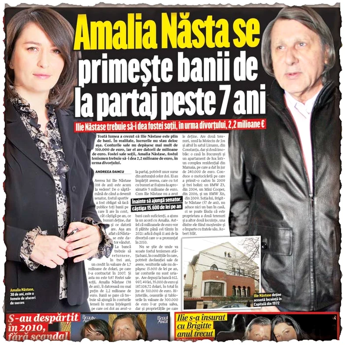 Brigitte Sfăt, soţia celebrului tenismen, spune că totul a fost glumă. ”Eu mă ocup de partea asta cu avocaţii şi vă spun clar că nu va face nici un demers în acest sens. Pe atunci erau alte vremuri. Statul lua banii şi trebuia să reprezenţi clubul. Primea ursuleţi, alte chestii, nu bani. Ilie nu se bazează pe banii ăia. Are afaceri de milioane de euro”, a declarat, pentru Click!, nevasta lui Năstase.