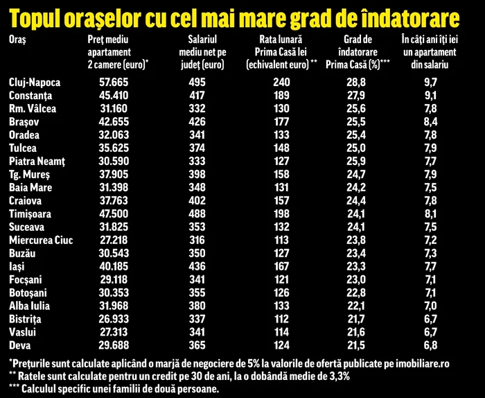 V-aţi întrebat vreodată câţi ani muncim ca să avem propria casă? Câte eforturi facem pentru un apartament cu 2 camere, de 50 de metri pătraţi? Revista Capital a realizat o analiză, pentru mai multe oraşe din ţară. Iată cât de îndatoraţi suntem şi în câţi ani avem actul de proprietate în mână.