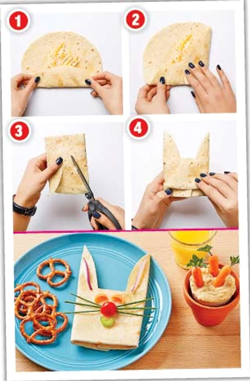 O gustare haioasă, la întoarcerea acasă. Ca să determini un mofturos să mănânce, trebuie să te joci alături de el şi să creezi în farfurie aranjamente dragălaşe, din mâncare. Spre exemplu, lipia cu humus e mult mai interesantă dacă e împachetată în formă de iepuraş.