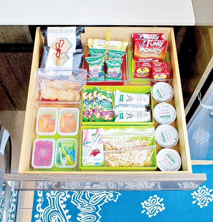 Pune în ordine case-rolele din plastic şi gustările pe care trebuie să i le dai la el dimineaţa. Organizează-te -astfel încât să le ai pe toate la-ndemână. Vei scuti timp.