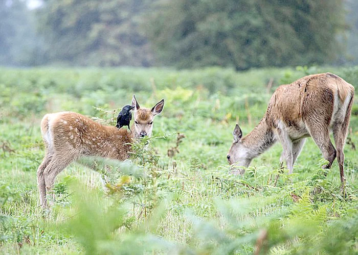 În timp ce păştea împreună cu părinţii pe o pajişte dintr-un parc londonez, o cioară i-a poposit pe grumaji şi a început să-i ciugulească din ureche. În loc s-o zburătăcească, Jessica i-a permis să stea după pofta inimii în spinarea sa, numai să o scape de căpuşele şi paraziţii care îşi făcuseră cuib în urechea ei. Iar cioara s-a pus pe muncă serioasă, fiindcă insectele i se păreau delicioase. Timp de 5 minute, pasărea i-a făcut curăţenie lună în aparatul auditiv. Căprioara şi pasărea s-au privit la despărţire, recunoscătoare, după care zburătoarea s-a înălţat satisfăcută spre cer.
