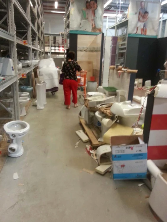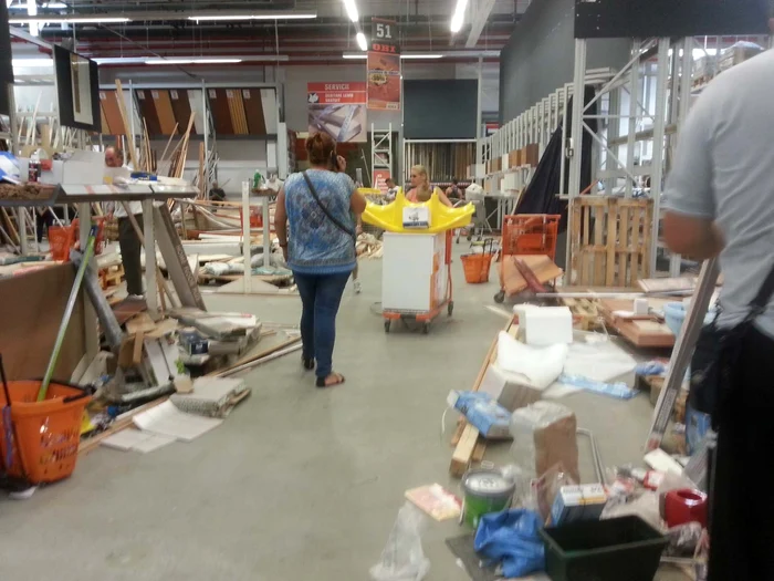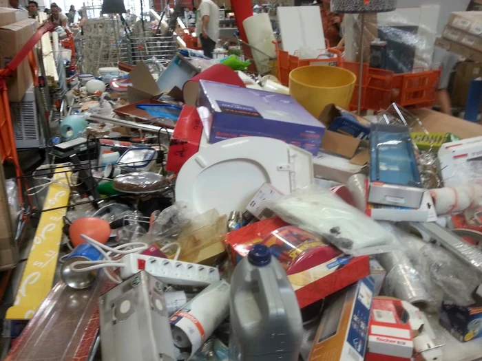 O promoţie de 70% la toate produsele unui lanţ de magazine de bricolaj, începută ieri, a transformat zona în care erau expuse mărfurile în pământ pârjolit.