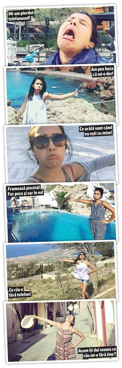 Să îi exprime în fiecare fotografie dorul pe care i-l poartă! Frumos şi romantic totodată! Spre finalul sejurului, mireasa a recunoscut pe contul ei de socializare că se simţea atât de bine încât făcea eforturi supraomeneşti să mimeze o grimasă îndurerată de dragul soţului care o aştepta acasă, în Lahore. În timp ce făcea o croazieră pe Marea Egee, şi-a scăpat telefonul mobil în apă. Aşa că din acel moment a început să mimeze două lucruri deodată: lipsa soţului şi pierderea telefonului.