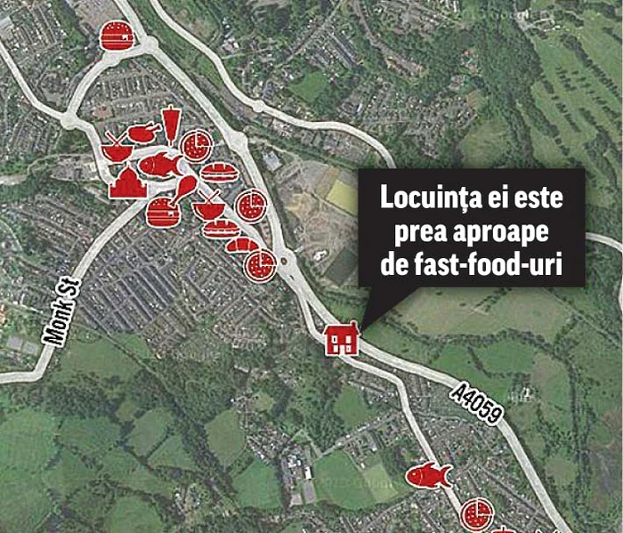 Numai că vecinii sunt foarte îngrijoraţi că locuinţa Georgiei, cunoscută cândva sub porecla ”Prinţesa comenzilor de mâncare acasă”, e la mai puţin de un kilometru de 20 de restaurante fast-food.