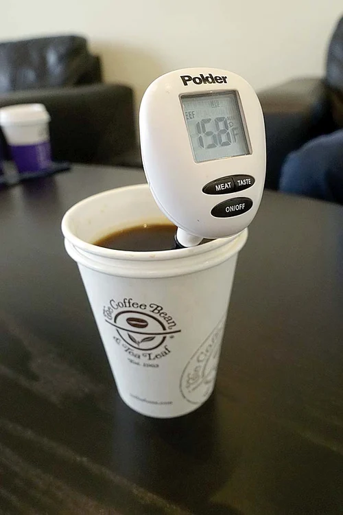 Dacă iniţial cafeaua îţi este servită la masă la 65-70 de grade, termometrul Pokler (care costă 9 dolari) te avertizează că nu te poţi atinge de ea decât atunci când scade la 45-50 de grade.