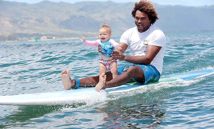 Incredibil! Hadassah are doar nouă luni, dar e înnebunită după adrenalina pe care i-o dă surful.