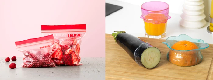Puteți congela fructe și legume, dar și pâine, în pungi de plastic precum ISTAD. De asemenea, puteți depozita fructele și legumele proaspete, precum și pe cele rămase în urma stoarcerii sucului, în capacele ÖVERMÄTT, care vor preveni alterarea rapidă.