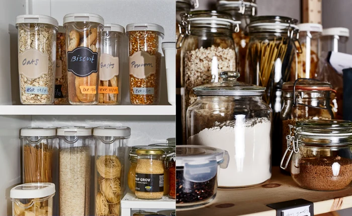 Un mod eficient de a economisi spațiu atunci când depozităm alimente precum paste, orez, zahăr sau făină este să le mutăm din ambalajul original în recipiente precum cele din colecția KORKEN, care pot fi amplasate cu ușurință unul lângă altul sau unul peste altul. Astfel, veți ști tot timpul ce aveți la îndemână, care vă sunt proviziile, iar planificarea meselor devine și ea mai ușoară.