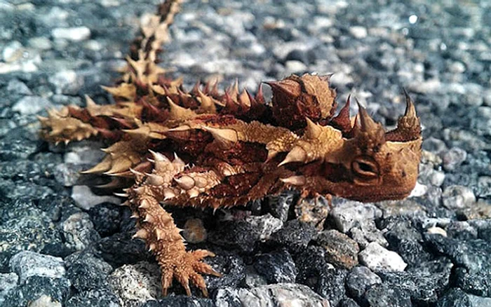 2. Dragonul Thorny (sau diavolul ţepos) - mica şopârlă australiană se poate camufla perfect în nisip, ba chiar are şi un cap fals prin care induce în eroare.
