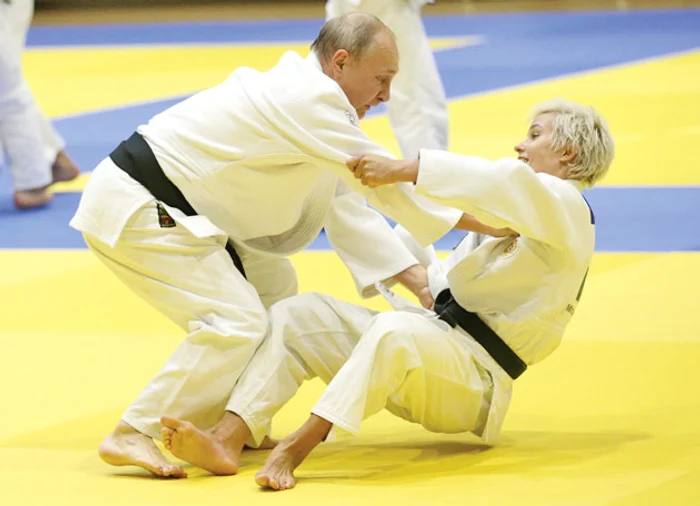 Vladimir Putin este într-o formă fizică de invidiat la cei 66 de ani ai săi. El a sosit neanunţat la un antrenament de judo care avea loc la ora 21.00 la Centrul de Antrenament Yug-Sport, din Soci. A făcut încălzirea cu sportivii care se antrenau în sală şi a acceptat provocarea venită din partea frumoasei Natalia Kuziutina, de 29 de ani.