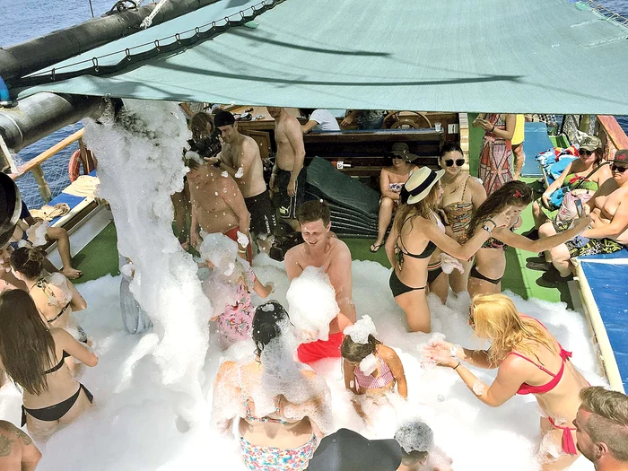 Este vorba despre o excursie opţională care începe de la ora 9.00 şi se termină în jur de ora 15.30. Plecarea se face din portul turistic din Antalya, cu un iaht cu trei etaje. La primul etaj este un restaurant, la etajul doi sunt două baruri, o piscină pentru copii, şi un ring de dans unde va fi un show făcut de MC-ul vasului şi o petrecere cu spumă ce strânge toată lumea pe ring.