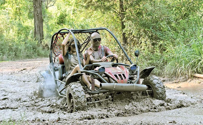 O plimbare pe cărări de munte nu a fost niciodată mai antrenantă ca la volanul unui buggy. Maşinuţa, care poate fi ocupată doar de şofer sau de 2 persone, îţi ridică nivelul de adrenalină de la primele minute. Drumul şerpuit pe teren accidentat, “acompaniat” de gropi pline de apă şi noroi, te va face să te murdăreşti din cap până în picioare, dar la final nu vei mai simţi că -te-ai umplut de pete, ci doar că ai o stare de energie. Totul durează în jur de 2.30 ore.