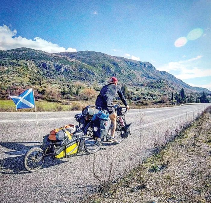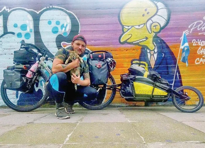Are în plan să parcurgă tot globul pământesc pe două roţi! Scoţianul Dean Nicholson a traversat deja o bună parte din Europa pe bicicletă. E însoţit de pisica sa, Nala, care e nedezlipită de umărul lui.