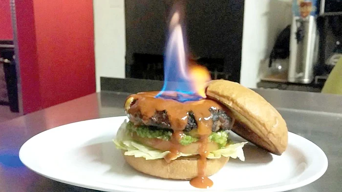 Un burger picant făcut din cei mai iuţi ardei din lume, destinat exclusiv adulţilor, care se vinde la pachet cu mănuşi de protecţie, a fost inclus în meniul unui restaurant din Marea Britanie.