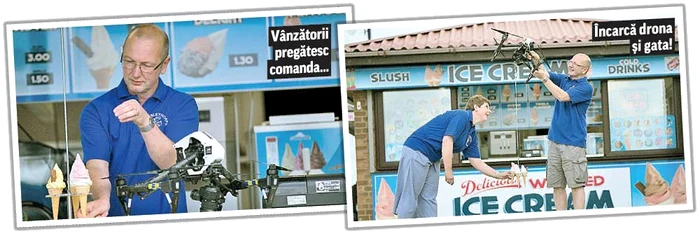 O idee genială! Patronii unei firme de îngheţată populare în Marea Britanie au lansat în premieră drona care livrează îngheţata copiilor direct pe plajă. Un cornet costă 1,20 de lire sterline şi poate fi comandat de pe o aplicaţie instalată pe telefonul mobil. Comanda ajunge la cel mai apropiat punct de vânzare.