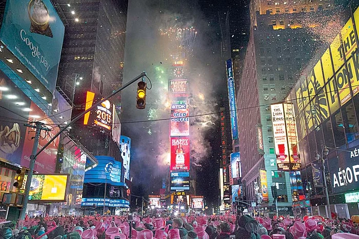 Sua. La New York, faimoasa minge de cristal a coborât la miezul nopţii, în uralele mulţimii. Zeci de vedete internaţionale au încălzit