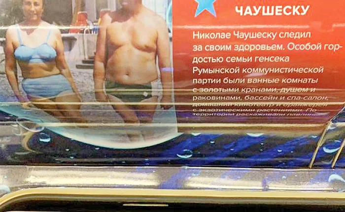 “Ieri m-am urcat pentru prima dată în trenul «Sănătate». Pe pereți se află sportivi, campioni, dintr-un motiv oarecare Brejnev și Hruşciov (n.r. - foști lideri comuniști ai URSS) și... Ceaușescu!”, se arată în postarea Tatianei Tanja Yarikova, cea care a făcut și fotografia.