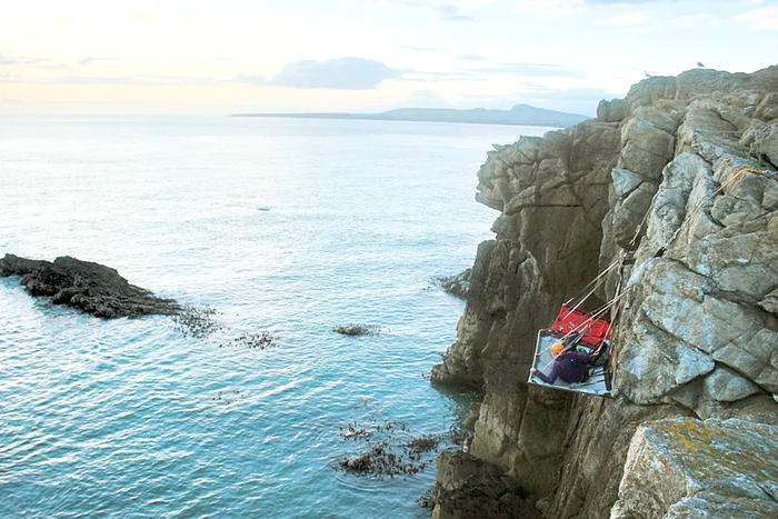 În Hotelul Portaledge din Anglesey, North Wales, există posibilitatea de a vedea primii răsăritul, stropiţi de valurile învolburate ale Mării Celtice, deoarece patul este cocoţat de o stâncă de pe coastă.