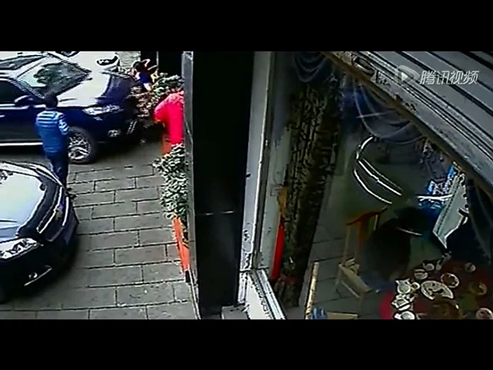 O chinezoiacă îşi protejează copilul cu propriul trup atunci când un şofer încurcă frâna cu acceleraţia.