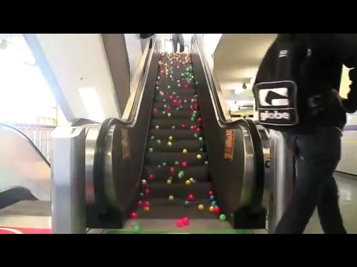 VIDEO Mingi pe scara rulantă