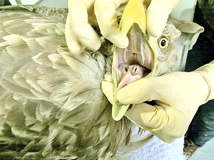 “Pe lângă starea avansată de slăbire, a fost identificată o fractură la nivelul tibio-tarsului stâng şi o alică sub piele, la nivelul membrului drept. Bănuim că fractura a fost cauzată de o altă alice care s-a dezintegrat la impactul cu osul. Fractura s-a produs cu mai multe zile în urmă, iar animalul a supravieţuit din resursele corporale şi din cadavre găsite, fiind o specie ocazional necrofagă.