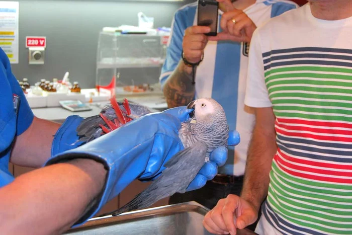 Coco, papagalul african sălbatic şi gălăgios care şi-a exasperat stăpânul, a ajuns la spital. Medicii au vrut să vadă de unde atâta agresivitate din partea înaripatei.