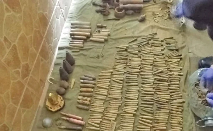 Medicii şi-au dat seama că rănile nu pot fi cauzate de petarde, fiind mult mai grave: plăgi multiple la nivelul mâinii şi al feţei. Astfel, poliţiştii au descins în locuinţa bărbatului, găsind într-o anexă un adevărat arsenal de război care, dacă ar fi explodat, ar fi putut provoca o tragedie de proporţii. Au fost găsite 1.366 de muniţii şi elemente de muniţie: 483 de bombe aruncător, proiectile de diferite calibre, grenade ofensive şi defensive, cartuşe, respectiv 883 elemente de muniţie provenite din cel de-al Doilea Război Mondial.