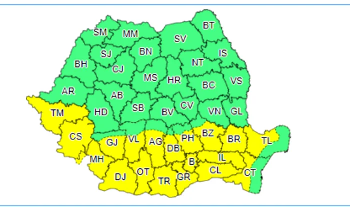 Potrivit sursei citate, în cursul zilei de duminică (8 august), în vestul şi sud-vestul ţării disconfortul termic va fi în creştere şi pe arii restrânse va fi caniculă. Avertizarea cod galben este valabilă până miercuri seară, la ora 22.00.