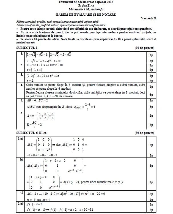 Rezolvarea subiectelor la Matematică, Bac 2018