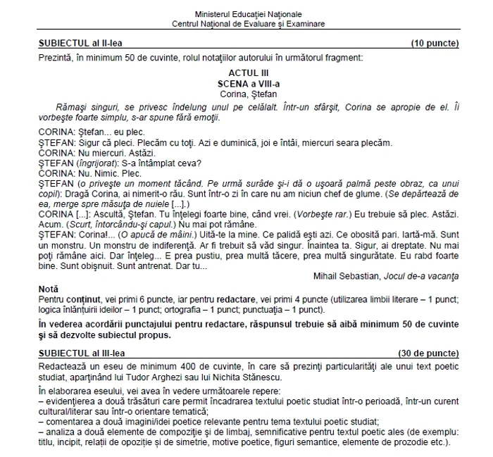 Bacalaureat 2018, sesiunea de toamnă. Subiectele la proba de Limba și literatura română