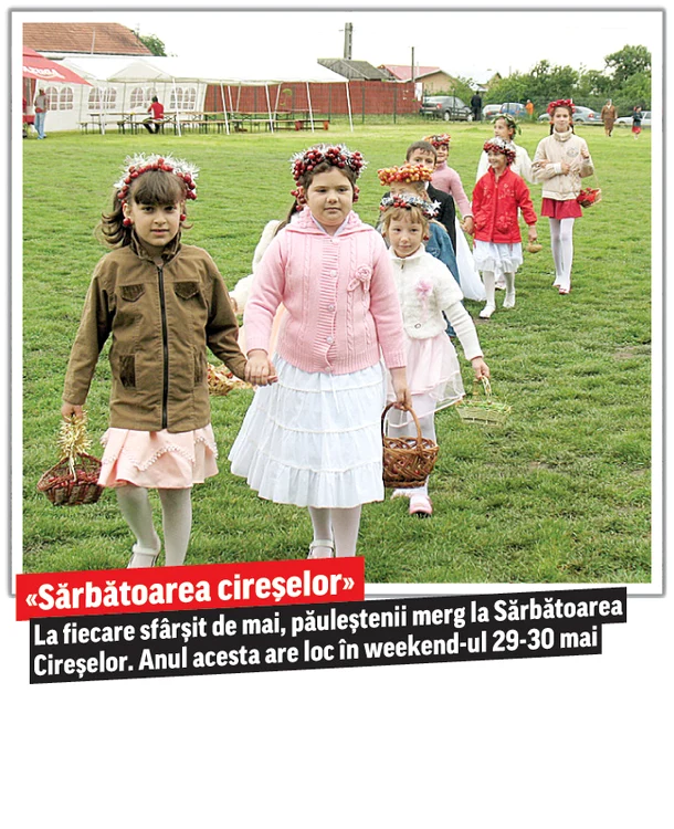 “Altceva nu creşte la noi. Am încercat să plantăm piersici, caişi, meri, dar se usucă. Pământul este foarte bun pentru cireşi”, ne explică Gheorghe Stoica, 76 de ani. Păuleştenii gospodari fac bani frumoşi din vânzarea fructelor. Tanti Maria se laudă că vinde cam 30 de kilograme pe zi, dar şi munceşte pe măsură. Cu noaptea-n cap mege la cules ca să aibă peste zi coşuri întregi cu marfă proaspătă. La fiecare sfârşit de mai, localnicii din Păuleşti lasă munca deoparte. Se strâng şi se distrează la “Sărbătoarea cireşelor”. Şi în pieţele din Capitală găseşti cireşe româneşti cu 15 lei kilogramul.