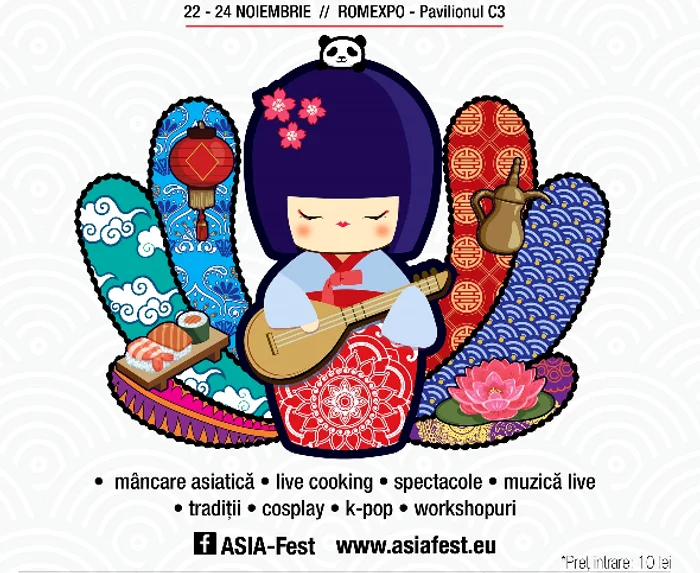Asia Fest, primul festival care promovează răspândirea tradițiilor și obiceiurilor orientale, revine în luna noiembrie cu a șaptea editie, a cărei tematică este Colors of Asia. Festivalul propune o călătorie până în cele mai îndepărtate colțuri ale marelui continent astfel încât iubitorii de cultură, atât tradițională, cât și contemporană, să poată experimenta îndepărtata Asie și aduce publicului bucureștean 3 zile de spectacole, bucătărie tradițională asiatică, ateliere, expoziții și multe surprize pentru toată familia.