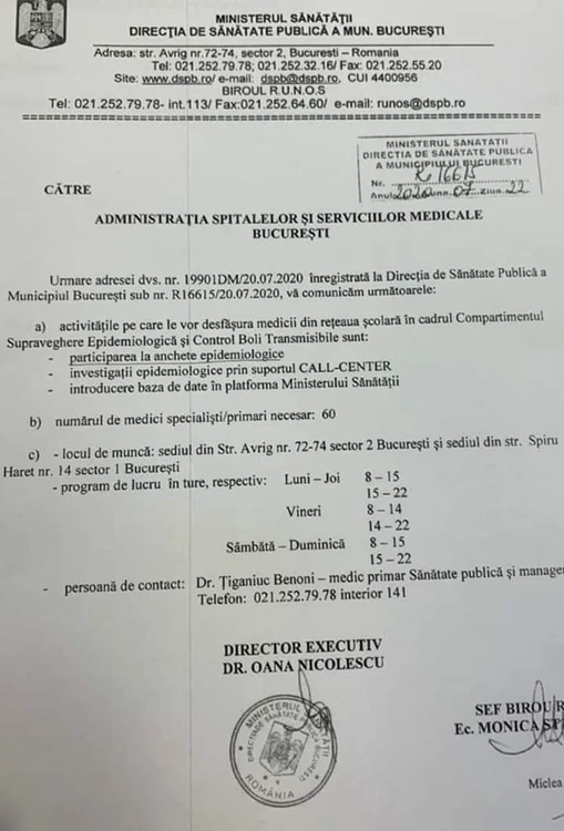 Dar iată că autoritățile vor să-i arunce în linia întâi și să-i pună să facă anchete epidemiologice. Deja cei de la DSP București au trimis solicitare către Administrația Spitalelor București, în subordinea căreia se află cadrele medicale școlare, că e nevoie să fie detașate 60 de dintre ele.