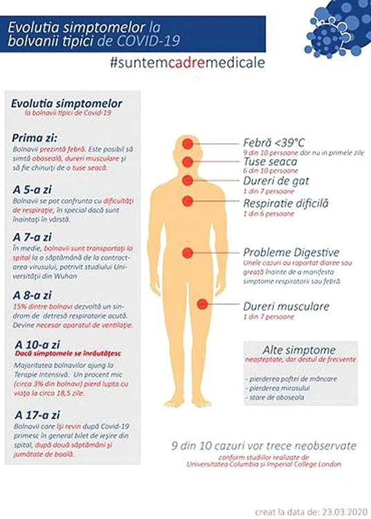 Un grup de medici români a realizat un material despre evoluţia în timp a simptomelor la bolnavii infectaţi cu coronavirus, scrie adevarul.ro.