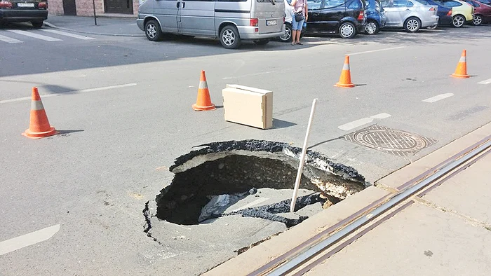 Intersecţia Şoseaua Pipera cu Calea Floreasca, în nordul Capitalei. O groapă de “doar” jumatate de metru diametru, şi cam tot atât de adâncă, încurcă serios traficul din zonă. Şi asta de mai bine de patru zile. “Sunt patru zile, poate chiar mai bine, de când a apărut fisura asta în asfalt şi nu am văzut niciodată un echipaj de poliţie, măcar, să dirijeze circulaţia. Au pus nişte semnalizatoare din plastic în jurul gropii şi aia a fost tot. Pericolul e mare, că zona este foarte circulată. Riscăm să cădem cu maşinile aici”, spune un taximetrist care traverseaza zilnic intersecţia din nordul Bucureştiului. Între timp, edilii Capitalei au anunţat că au început marcarea străzilor, adică vor revopsi dungile albe de separare a sensurilor de circulaţie. Rămâne de văzut dacă acestea vor fi întrerupte în dreptul gropilor sau le vor ocoli.