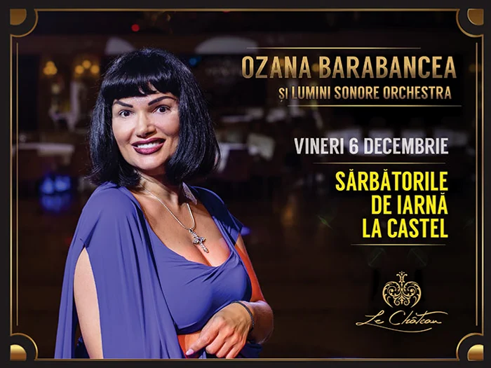 Pe 6 decembrie, de sfântul Nicolae, sunteți invitați la un concert inedit ce marchează începutul sărbătorilor de iarnă la Castel: Ozana Barabancea împreună cu cei doi copii ai săi, alături de cei 40 de instrumentiști ai orchestrei Lumini Sonore.Spectacolul “Sarbătorile de Iarnă la Castel” include, sub bagheta Ozanei Barabancea, colinde reinterpretate, uverturi din opere, arii, canțonete, muzică românească de film reorchestrată, muzica simfonica, jazz și poezie.