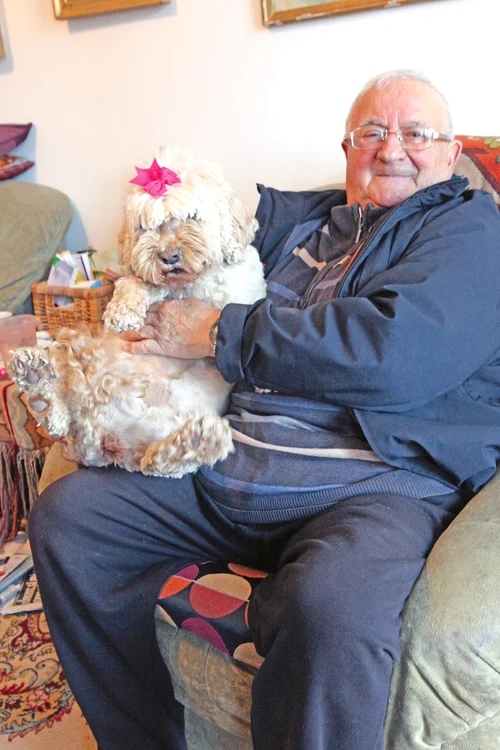 A luat-o acasă şi de atunci sunt împreună, două suflete devenite pereche prin voia sorţii. ”Unde merg eu merge şi ea, când mă doare ceva, simte şi parcă o doare şi pe ea. De la un timp este foarte bolnavă, are o boală de oase, ceva grav, doctorii mi-au zis că este un fel de artroză, nu poate merge. În plus i-au găsit probleme la inimă şi are şi tensiune mare. Are nevoie de mine şi eu de ea”, se uită cu milă fostul inginer la patrupedul care se mişcă prin casă târându-se, deoarece nu-şi poate folosi labele din faţă, par din plastilină.