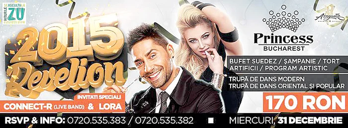 Lora va cânta în noaptea de Revelion alături de Connect-R în Princess Club. Cei care doresc să-i asculte trebuie să scoată din buzunar 170 de lei de persoană. Preţul include: bufet suedez, şampanie, tort, artificii şi program artistic. Separat se achiziţionează un bon valoric de 50 lei /persoană pentru consumaţie. Petrecerea începe pe 31 decembrie, la ora 21.00, şi ţine până la ora 7 dimineaţa.