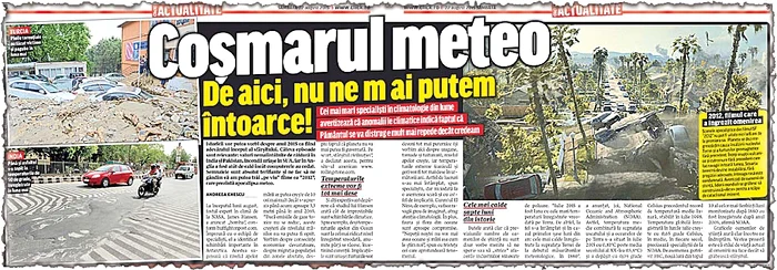 În România, luna februarie ar putea fi cea mai caldă din istorie. În primele 16 zile, au fost temperaturi nefiresc de ridicate pentru o lună de iarnă. ”În România, luna ianuarie 2016 a fost mai rece decât media lunară, cu minus 3 grade. Vă reamintesc că au fost zile și nopți cu ger. Însă luna februarie ar putea fi mai caldă. În 16 februarie au fost doborâte recorduri de căldură în mai multe localități, inclusiv la București, unde au fost 25,7 grade. Chiar dacă miercuri (17 februarie, n.r.) s-a răcit brusc și semnificativ, valorile tot sunt mai mari decât normele lunii”, ne-a explicat Meda Andrei, meteorolog ANM. (Marina Dohi)