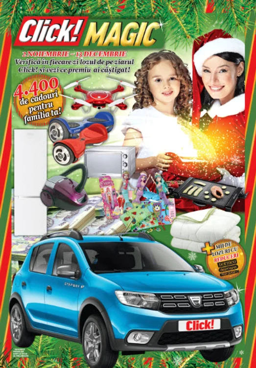 De vineri, 2 noiembrie participă la Click!MAGIC și poți câștiga unul dintre cele peste 4.400 de premii-cadou: MAȘINĂ, BANI CASH, GADGETURI, ELECTROCASNICE și set-uri de JUCĂRII.