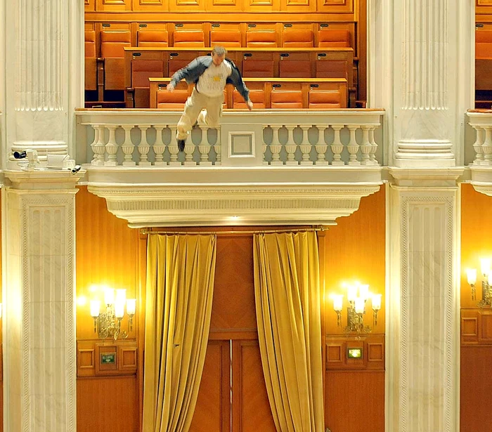 Gest extrem sau nebunie?. Disperare sau boală? Celebrul protestatar Adrian Sobaru la volanul unei maşini Dacia 1300 a intrat ieri în curtea Palatului Victoria, unde s-a plimbat mai mulţi zeci de metri. Înconjurat de poliţişti, a fost scos în forţă din maşină, încătuşat şi dus la cea mai apropiată secţie de Poliţie.
