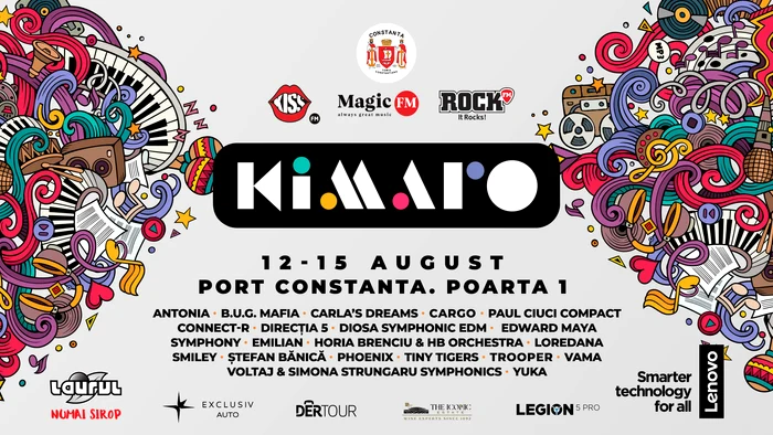 București, 9 august 2021Kiss FM, Magic FM și Rock FM prezintă KIMARO, cel mai mare festival al muzicii românești: patru zile de neuitat, alături de unii dintre cei mai iubiți artiști din Romania și hiturile lor, între 12 și 15 august, în Portul Constanța, la Poarta 1.Pe 12 august Diosa Symphonic EDM, Edward Maya Symphony și Voltaj & Simona Strungaru Symphonics vor deschide festivalul KIMARO cu o seară Electro Symphonic.Seara de 13 august îi aduce pe scena KIMARO pe Direcția 5, Horia Brenciu & HB Orchestra, Loredana și Ștefan Bănică, iar în deschidere publicul le va descoperi pe Tiny Tigers, patru tinere extrem de talentate.Pe 14 august vin pe scena KIMARO Antonia, B.U.G Mafia, Carla’s Dreams, Connect-R și Smiley. Seara de 14 august va fi deschisă de Yuka, o artistă de 16 ani, câștigătoare a festivalului Mamaia Copiilor la 6 ani, dar și de Emilian, un tânăr de 25 de ani care face muzica de la 5 ani.KIMARO încheie seria concertelor pe 15 august cu un line-up rock legendar: Cargo, Paul Ciuci Compact, Trooper, Vama și Phoenix.Experiența de festival este completată pe parcursul celor patru zile de o zonă gastronomică, food trucks și baruri cu o oferta variată de "street food" de la mâncare indiană la burgeri și înghețată artizanală, de la cocktailuri la selecție de vinuri spumante, plus alte delicii. Zona de food se deschide zilnic de la orele 16:00, iar concertele încep în fiecare zi la orele 18:00. Accesul publicului în cadrul evenimentului KIMARO este gratuit și se face exclusiv pe baza unui cod de bare pe care publicul îl poate obține de pe site-ul kimaro.ro. Pentru accesul în cadrul Festivalului este obligatorie prezentarea unuia dintre următoarele documente în format tipărit sau electronic:⦁ Dovada privind vaccinarea împotriva virusului SARS-COV-2 (pentru care au trecut 10 zile de la finalizarea schemei complete de vaccinare);⦁ Rezultatul negativ al unui test RT-PCR pentru infecția cu virusul SARS-CoV-2 (nu mai vechi de 72 de ore) sau rezultatul negativ certificat al unui test antigen negativ (nu mai vechi de 24 de ore);⦁ Dovada trecerii prin boală, respectiv că persoana se află în perioada cuprinsă între a 15-a zi și a 180-a zi ulterioară confirmării infectării cu virusul SARS-CoV-2În funcție de evoluția situației epidemiologice, de normele legale și recomandările emise de către autoritățile competente, Organizatorul își rezervă dreptul de a adopta măsuri și/sau restricții suplimentare privind accesul la eveniment. Nu este permis accesul în spațiul în care se derulează evenimentul cu: obiecte contondente, obiecte ascuțite, băuturi, mâncare, substanțe interzise.KIMARO este un eveniment al Primăriei MUNICIPIULUI CONSTANȚA, prezentat de Kiss FM, Magic FM și Rock FM. Parteneri: Lenovo Legion, Siropurile Laurul, Exclusiv Auto, DerTour, The Iconic Estate.
