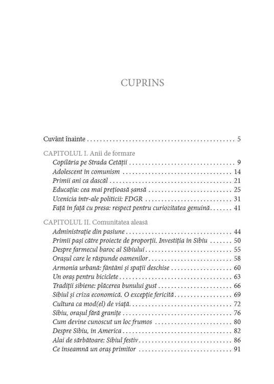 Cuprinsul cărţii "Pas cu pas", de Klaus Iohannis