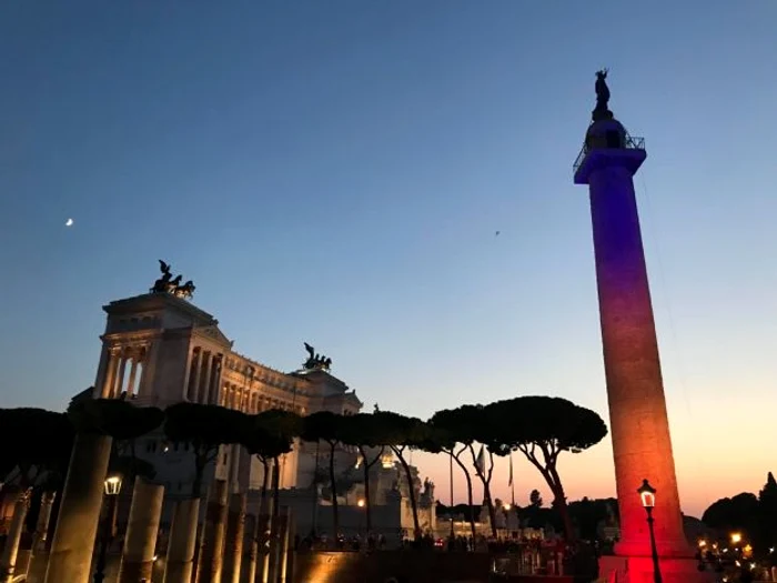 Preşedintele Klaus Iohannis, aflat în vizită de stat în Italia, a asistat, duminică seara, la iluminarea Columnei lui Traian în culorile tricolorului românesc. "Cred că un simbol mai profund şi mai frumos pentru legătura între popoarele noastre nu există", a declarat şeful statului.