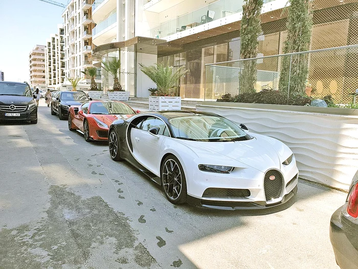 Fotoreporterii Click! au surprins, frumos aliniate, trei mașini în valoare totală de aproape 5 milioane de euro: un Bugatti, un Ferarri și un Rolls Royce de toată frumusețea
