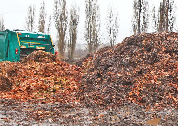 În medie cam 10 maşini de gunoi pline cu frunze intră pe poartă şi îşi descarcă marfa în zone speciale. “Frunzele sunt strânse de salariaţii care se ocupă de curăţenia stradală sau de cei de la parcuri. Sunt lăsate cam doi ani până se descompun. Sunt tasate cu maşini speciale şi amestecate cu pământ.