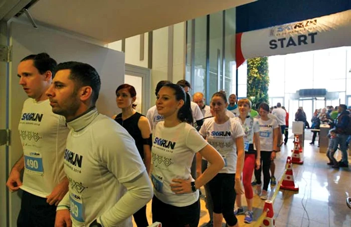 Parterul celei mai înalte clădiri din România s-a umplut sâmbătă (23 ianuarie) până la refuz de oameni plini de energie, cu chef de mişcare. Unii atleţi, alţii amatori. Îşi făceau încălzirea pentru SkyRun, cunoscutul maraton de alergat pe scări. Startul s-a dat la ora 11.30. Participanţii urcau câte doi, fiind cronometraţi cu ajutorul unor cipuri electronice.