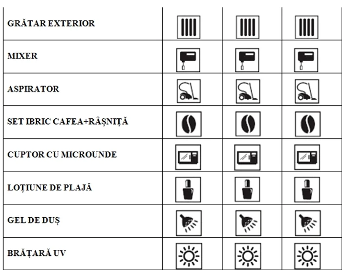 20 de premii constând în câte un grătar de exterior Cobb Premier în valoare de 291.25 lei fiecare;20 de premii constând în câte un mixer în valoare de 332.49 lei fiecare;7 premii constând în câte un aspirator în valoare de 675 lei fiecare;50 de premii constând în câte un set format dintr-un ibric de cafea și o râșniță în valoare de 126.04 lei fiecare;7 premii constând în câte un cuptor cu microunde în valoare de 236.73 lei fiecare;5.000 de premii constând în câte o loțiune de plajă. Loțiunile de plajă vor fi acordate în ordinea revendicării acestora astfel: